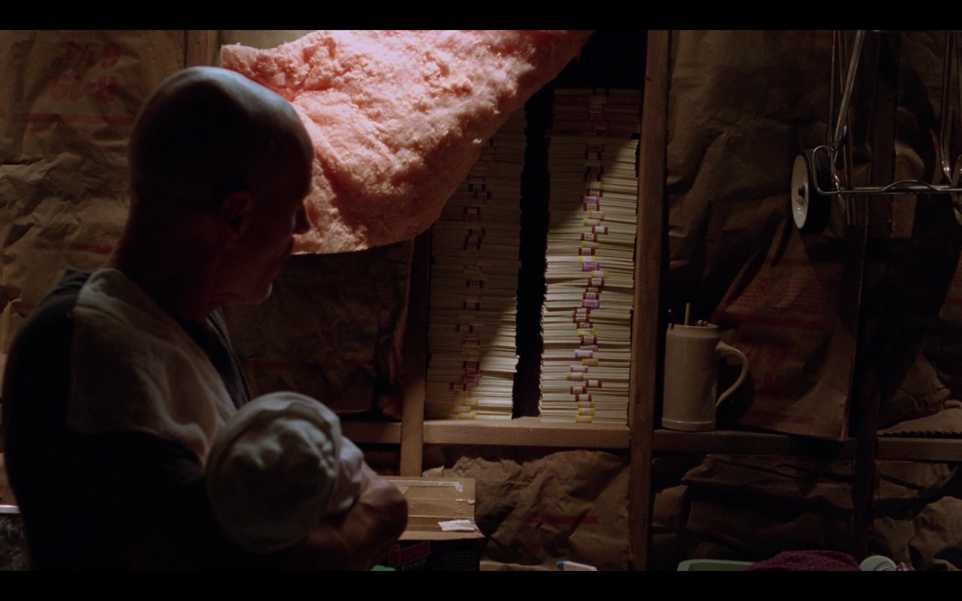 Jesse, meanwhile, prepares a meth and heroin speedball under Jane's direction. While he does, he grouses about Walt. As Jesse nods off from the shot, he tells Jane that Walt owes him $480,000. At first hearing only $480, Jane is shocked when she realises he means thousands not hundreds, then adjusts Jesse's body so he's on his side, "in case you throw up," she says, as thoughts of '$$$' run through her head.